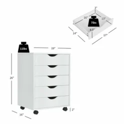 Costway 5 Drawer Dresser Storage Cabinet Chest W/Wheels For Home Office White
