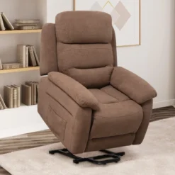 Costway Power Lift Recliner Chair Sofa For Elderly W/ Side Pocket & Remote Control GreyBrown