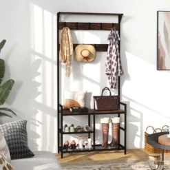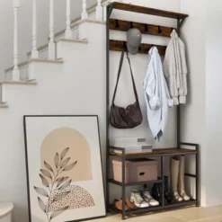 Costway 3-in-1 Coat Rack Industrial Hall Tree Shoe Bench Entryway Storage Shelf With Hooks