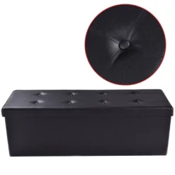 Costway Fabric Folding Storage Ottoman Storage Chest W/Divider Bed End Bench Light GreyDrak GreyNavy