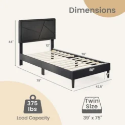 Costway Twin/Full/Queen Size Bed Frame With Button-Tufted Headboard & Wooden Slats Easy Assembly