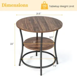 Costway 2 PCS 2-Tier Sofa Side End Table Round Nightstand With Sturdy Metal Frame Brown/Oak